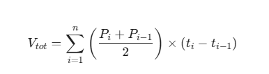 La formula che ho impostato per il calcolo dei volumi orari è lo standard per l'integrazione numerica: