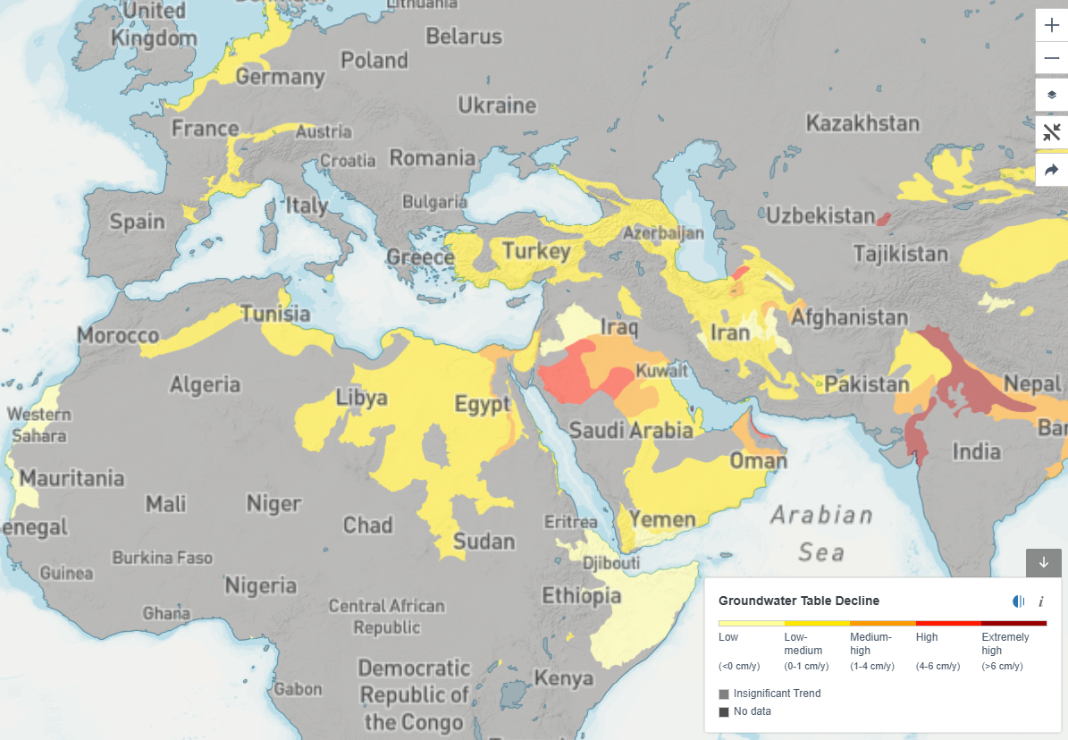 Allora, come idea, vedendo quanta gente abita in stati come Iran, Arabia Saudita, Egitto, Iraq, Israele , Siria e limitrofi ho voluto correlare la popolazione con la quantità d'acqua disponibile. È un calcolo "spannometrico", ma è il primo che mi è venuto in mente per capire come stia in piedi il sistema. Certo, c’è anche il petrolio che permette di comprare ciò che manca, ma il petrolio non si beve e non fa crescere il grano da solo.