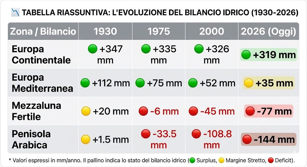 Non dobbiamo però pensare che questo sia un problema confinato "altrove", tra le dune del deserto. I dati parlano chiaro: l'Europa Mediterranea sta seguendo, passo dopo passo, la stessa traiettoria del Medio Oriente. Quello che una volta era un giardino rigoglioso sta diventando un'area a rischio, dove il bilancio tra pioggia e consumo si assottiglia ogni anno di più.